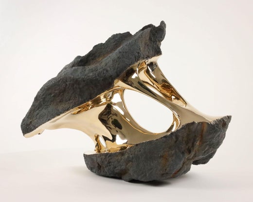 Gaïa par Romain Langlois - Sculpture en bronze, dorée, abstraite, en forme de rocher