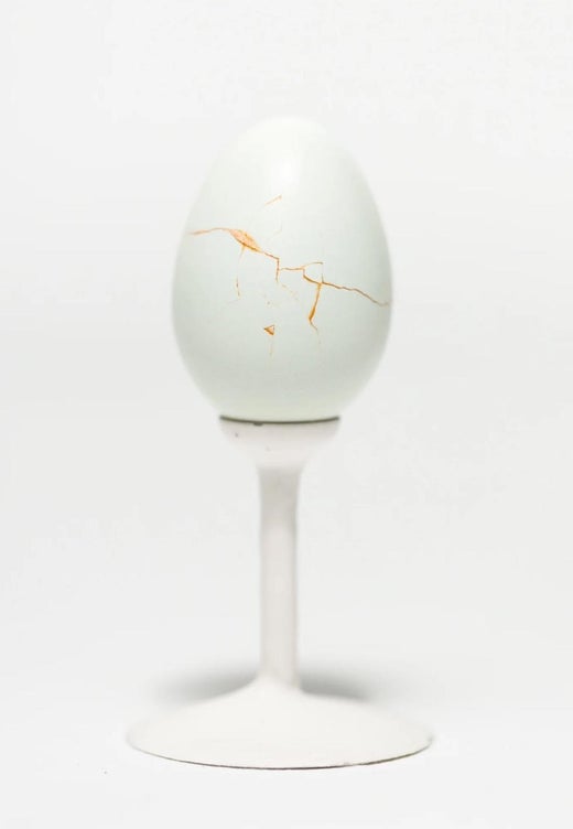 Cracked Egg, sculpture en résine et céramique Pop Art de Geoffrey Rose