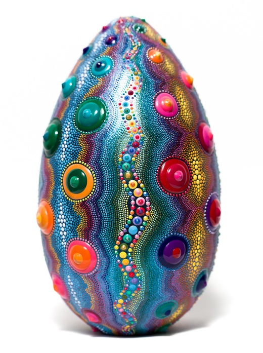 PJ Linden"Œuf en oursin candi", motif d'œuf, motifs, couleurs vives, texture, dimensionnel2024