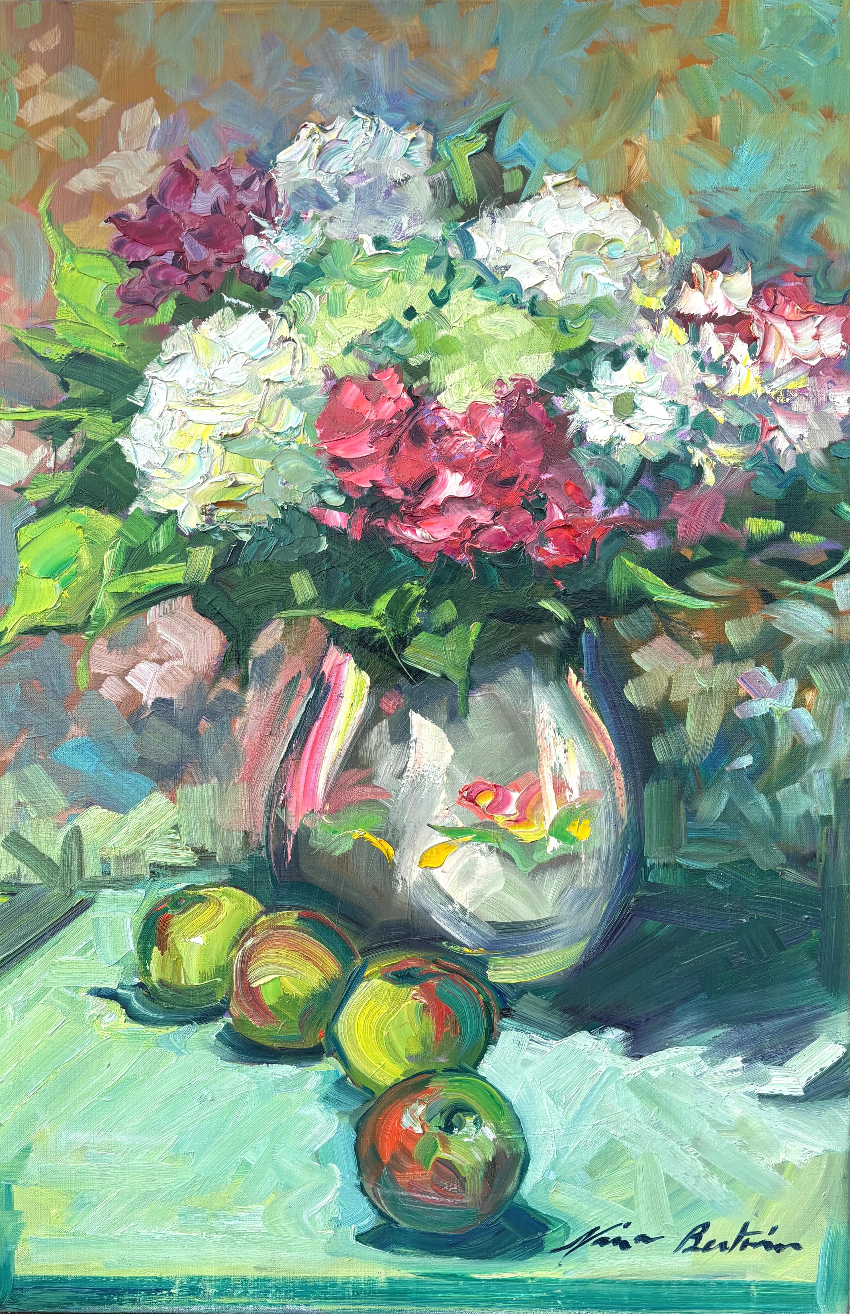 Cette magnifique peinture de Romina Milano présente une interprétation contemporaine de la grenade, rendue par un coup de pinceau expressif et une palette vibrante et équilibrée. Les...
