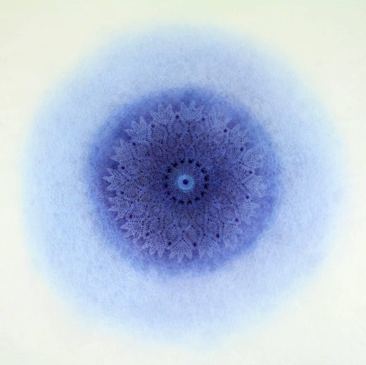 Revolution XXVI - gravure géométrique abstraite délicate et complexe bleue découpée au laser