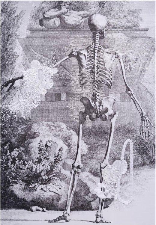 Tendre des relations entre des cultures géographiquement éloignées et, en même temps, souligner le fossé temporel qui les sépare, tel est le sens de l'œuvre d'Ana Seggiaro, basée sur les gravures d'Alberto Dürer, de Piranesi et d'Alberto. Pour l'artiste, l'art européen est le paradigme qu'elle a construit, à partir de cette formation elle a resignifié ses œuvres, les soumettant à sa considération et laissant une marque brodée qui marque un chemin différent de celui créé à l'origine. Dans le processus de création, elle prend les images qui l'intéressent, enquête sur leur histoire, répond à des questions telles que ce que l'artiste voulait dire ou si elle l'a simplement fait par hasard. Il s'agit ensuite de le photographier et de le modifier numériquement, soit en ajoutant de la couleur, soit en supprimant des détails pour créer un collage. Une fois l'image finale décidée, une impression est réalisée sur une toile d'art pour commencer le processus de broderie à la main. L'année dernière, en plus de la broderie, elle a décidé de peindre l'image. Ana Seggiaro est née à Buenos Aires, en Argentine. Initialement de nature picturale, dans ses différentes étapes, son travail explorait et incorporait de nouveaux matériaux et médias qui complétaient l'huile et la gravure qui sont à la base de son origine. Elle est diplômée en dessin et en gravure de l'École nationale des beaux-arts Prilidiano Pueyrredón en 1988.