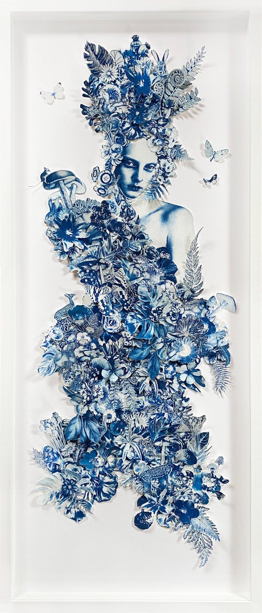 MATERIAL : Collage original de cyanotypes 3D en papier découpé