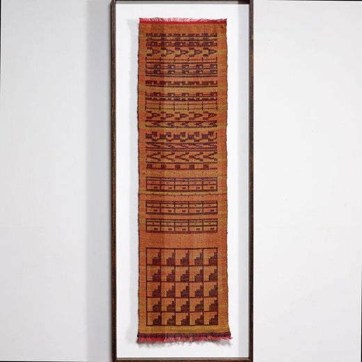 bords de chaîne exposés tressés/noués à une extrémité, bords ourlés à l'autre extrémité