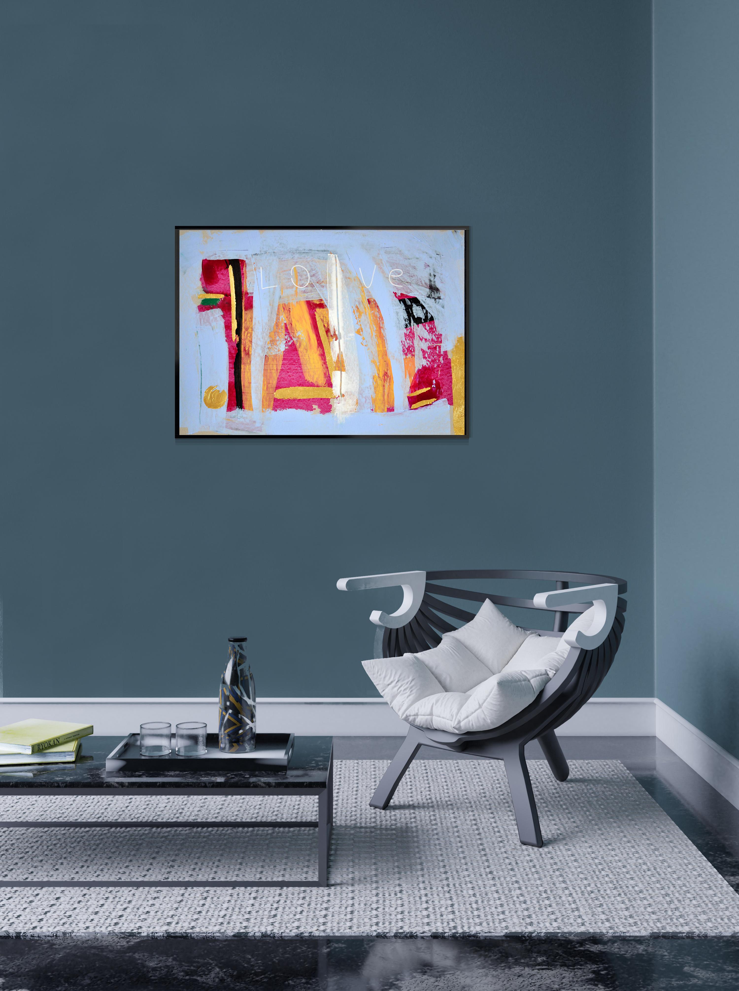 LOVE est une peinture qui transmet subtilement les émotions associées à l'amour, en utilisant le langage des couleurs, des formes et des textures.