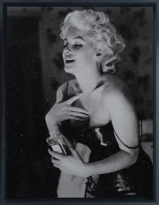 Hommage à la grande et regrettée Bridget Bardot. Sérigraphie tirée à la main. Poussière de diamant. Tendu sur cadre noir.