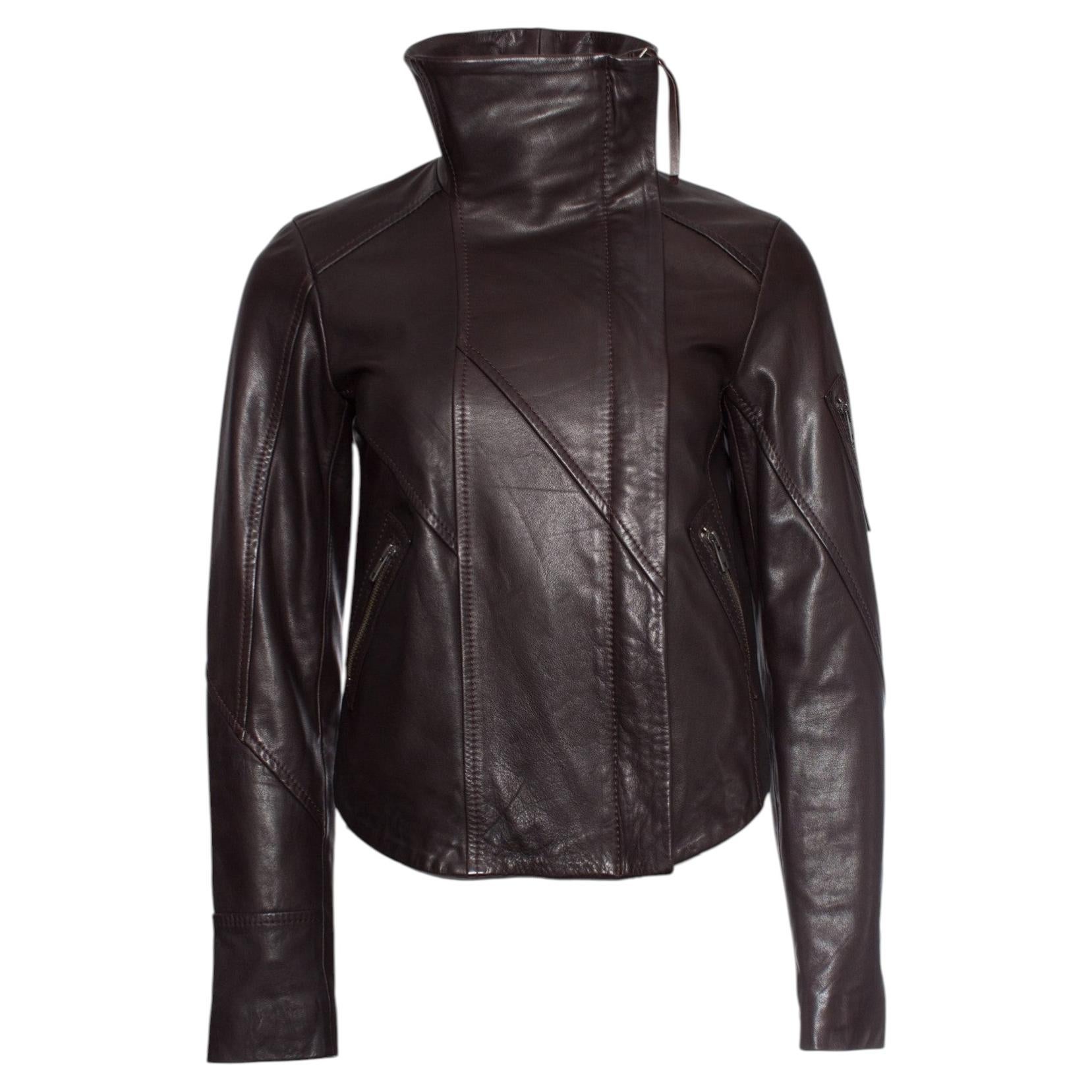 Denham, veste en cuir marron à col montant en taille S. Cet article est neuf - non porté.