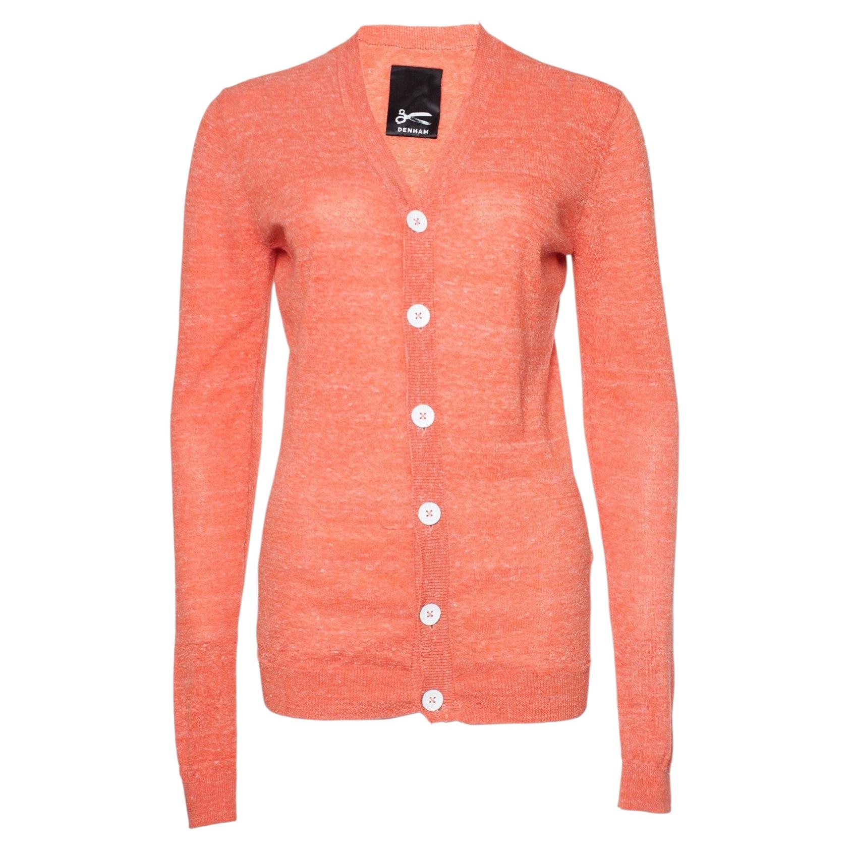 Denham, cardigan orange avec boutons blancs en taille XS. L'article est neuf - non porté.