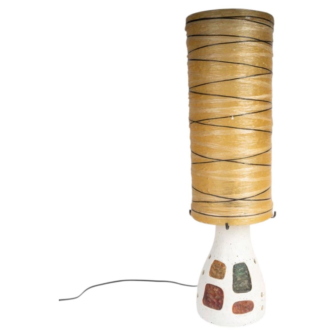 Lampe de table Accolay Studio Pottery du milieu du siècle avec abat-jour en raphia