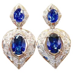 Ces boucles d'oreilles en forme de halo sont très belles et d'une grande richesse. Les pierres proviennent d'Afrique. Il s'agit de magnifiques pierres de taille ovale de 2,25 carats...