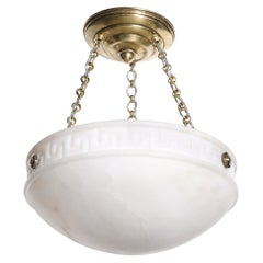 Rare et très élégante suspension à 1 lumières en albâtre, en bon état et de couleur chaude, de grande qualité et de grand design. Ce rare luminaire Art Deco datant de l'apogée de l'...