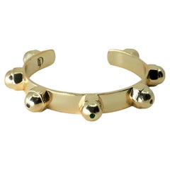 Skull Cuff Bracelet Studs Plaqué Or Green Glitter Enamel Made in Paris