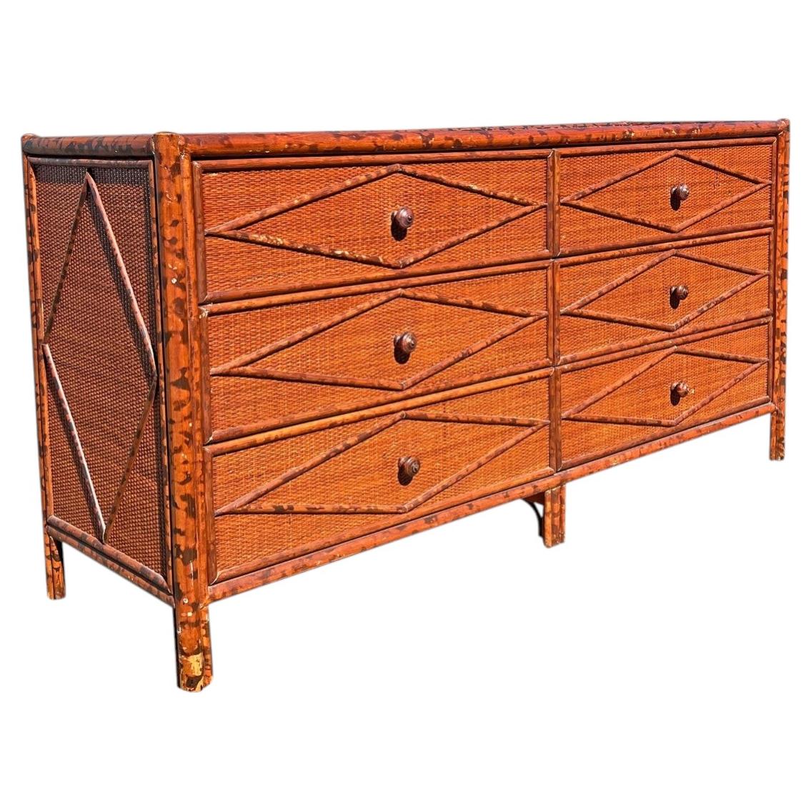 Il s'agit d'une belle commode en ronce de bois italienne fabriquée en Italie pour Bloomingdale's. Il présente un style Biedermeier ou néo-classique. Les tiroirs sont doublés de papier et construits en queue d'aronde. Le dessus est en granit. Il se lit noir...
