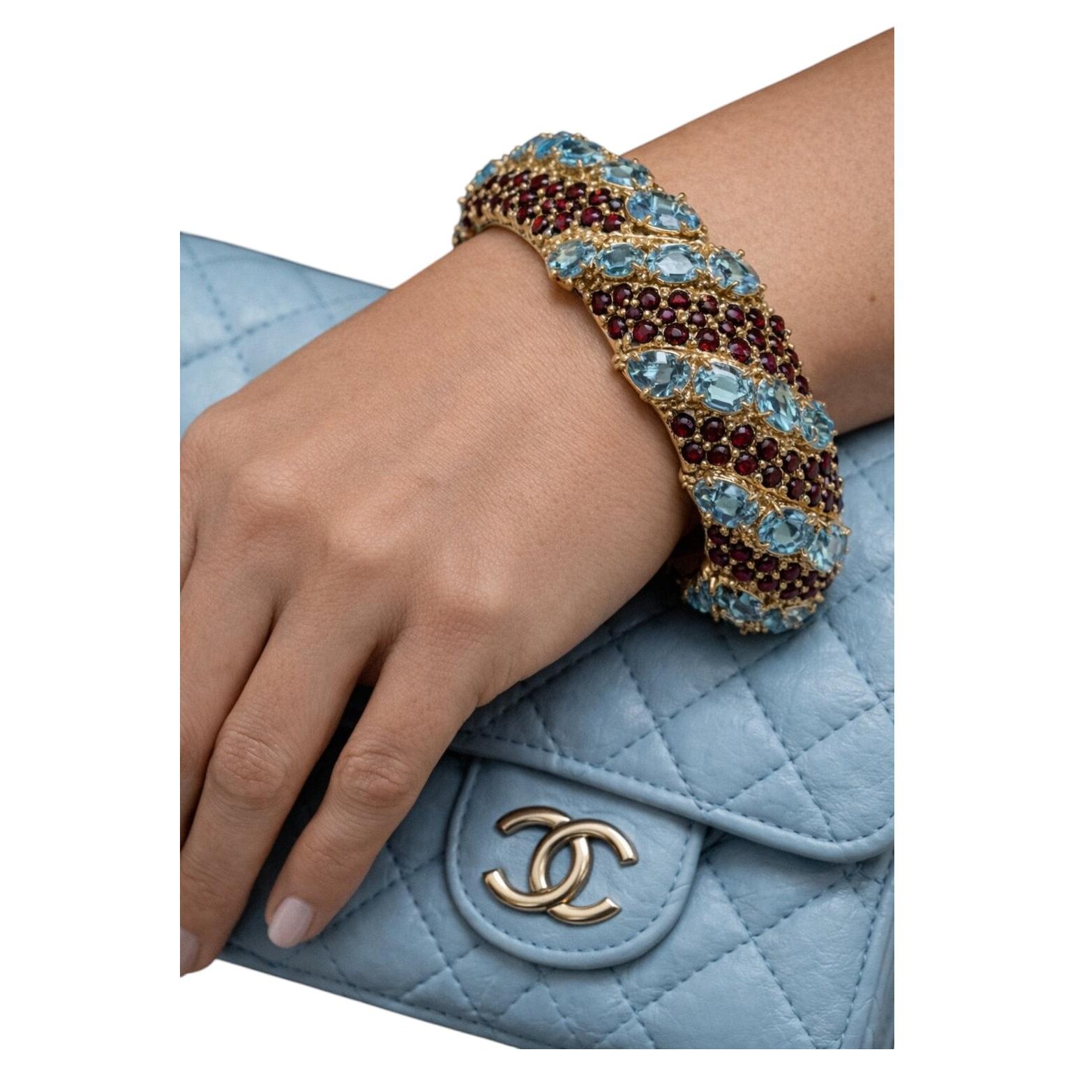 Bochic "Capri" Bracelet Vintage Zambian Emerald & Diamond Set 18K Gold & Silver