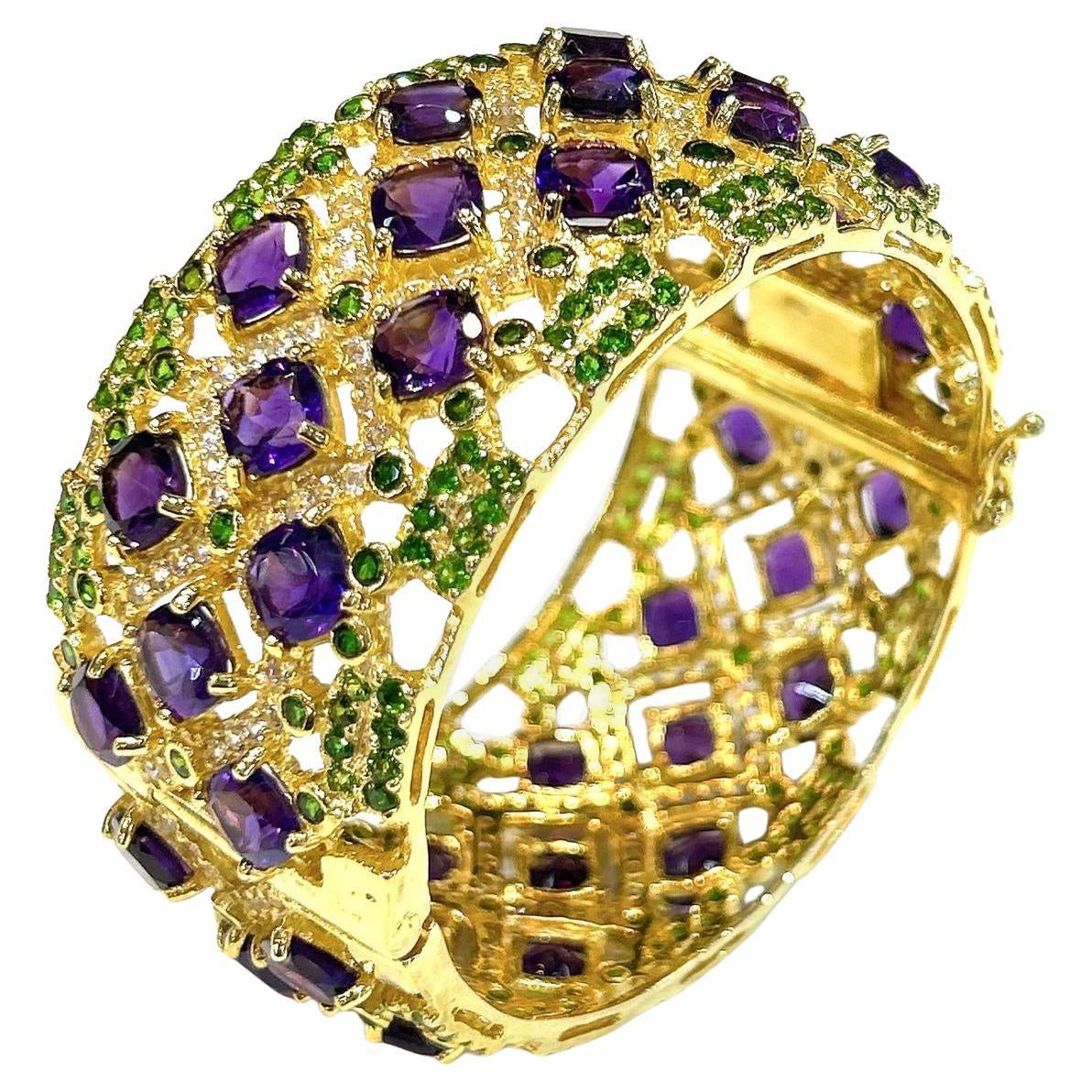 Bochic 'Capri' Manchette vintage en or 18 carats et soie avec rubis, saphir et émeraude naturels