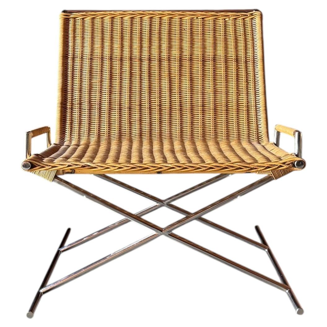 Chaise longue Landmark de Ward Bennett pour Brickel Associates en frêne et rotin ébénisé