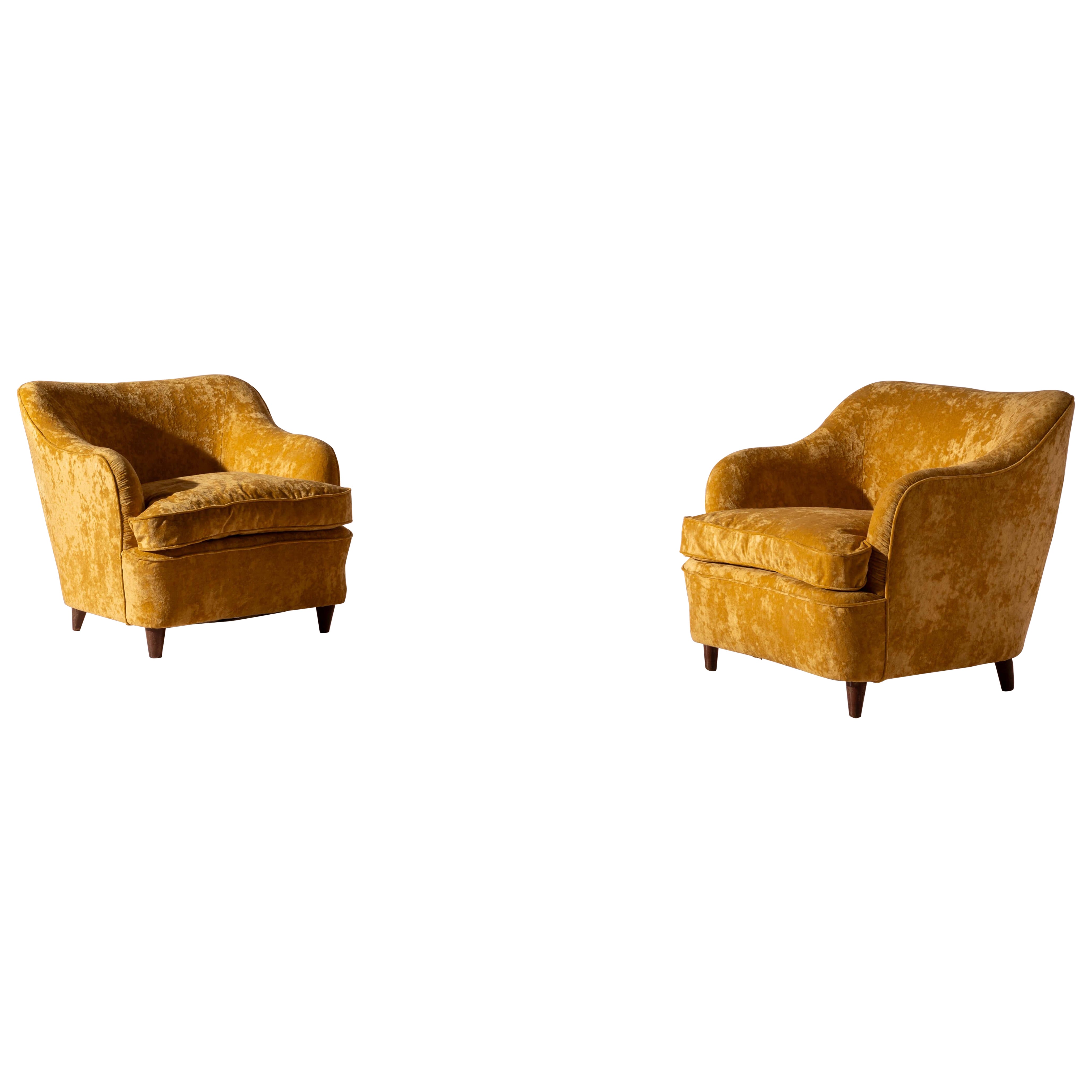 Paire de fauteuils en velours Gio Ponti Modernity pour Casa e Giardino, années 1950