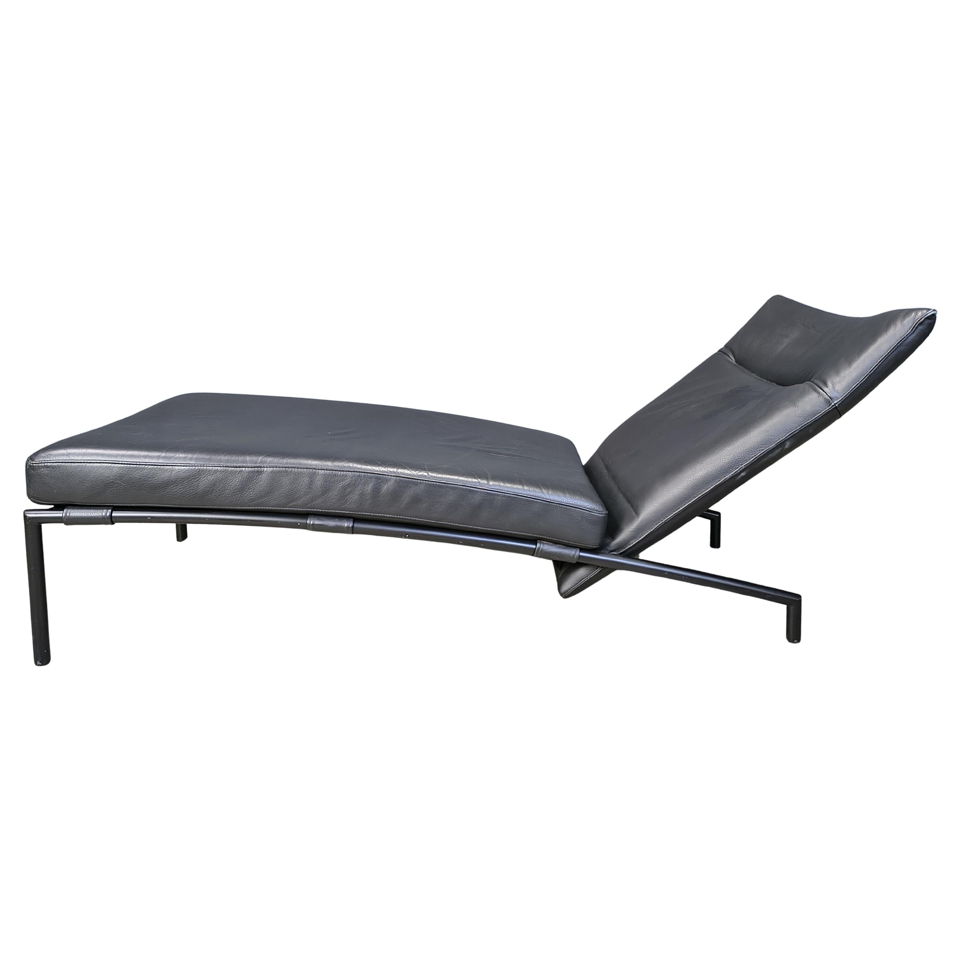 Chaise longue vintage en cuir noir par Peter Mally pour CORS, années 1990