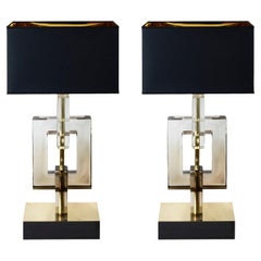 Lampe de table de designer français, laiton, céramique, acrylique, France, années 1950