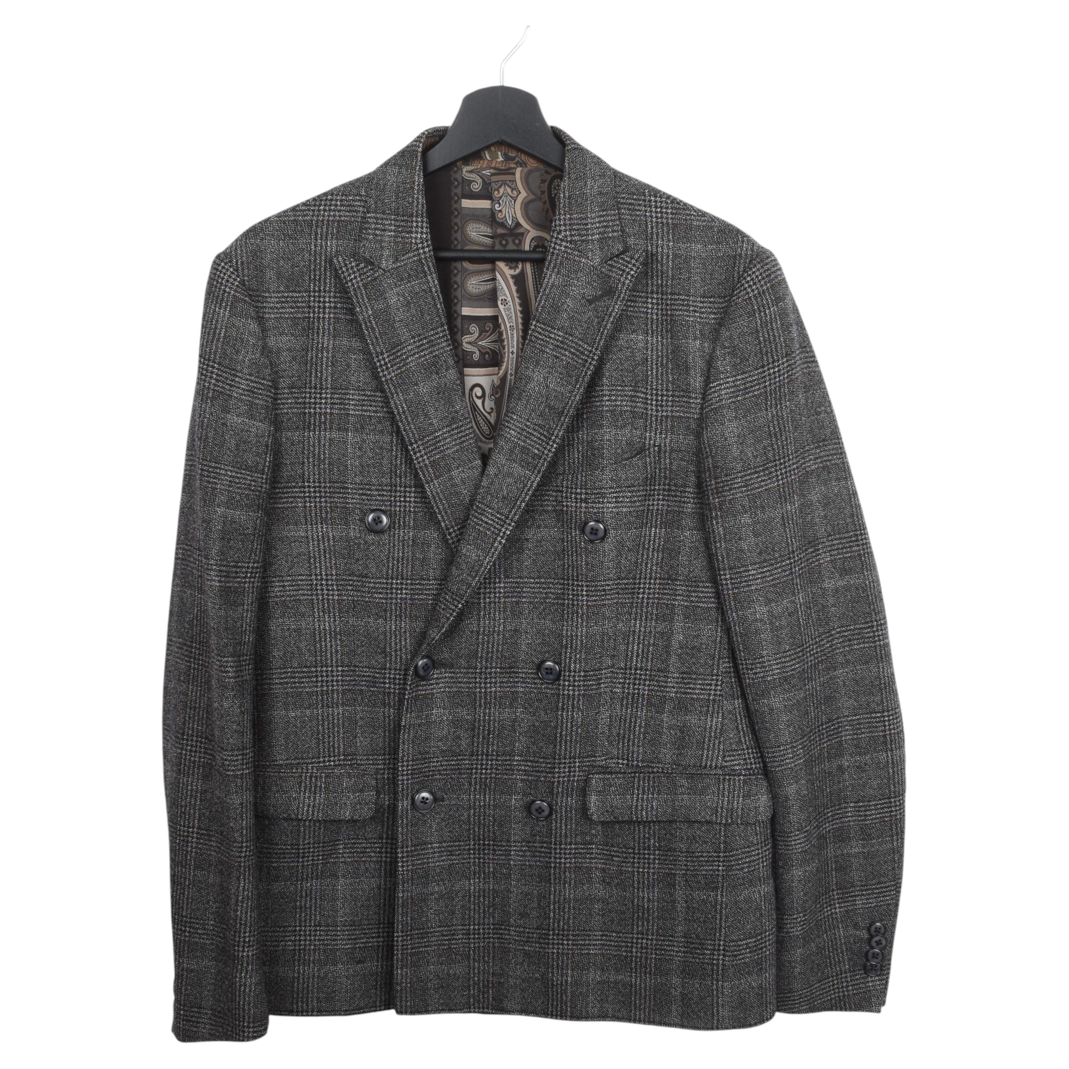 Veste ou manteau long Etro en laine "poilue" à imprimé animalier, coupe droite, col court cranté fermé par 3 boutons métalliques avec logo Etro, manches longues, 2 poches à rabat fer...