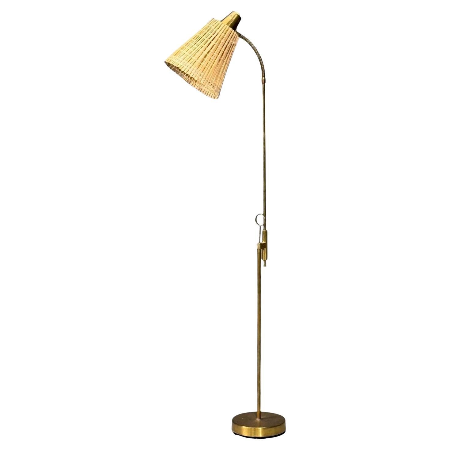 Lampadaire du milieu du siècle en laiton et cuir brun Falkenbergs Belysning, Suède, années 1960