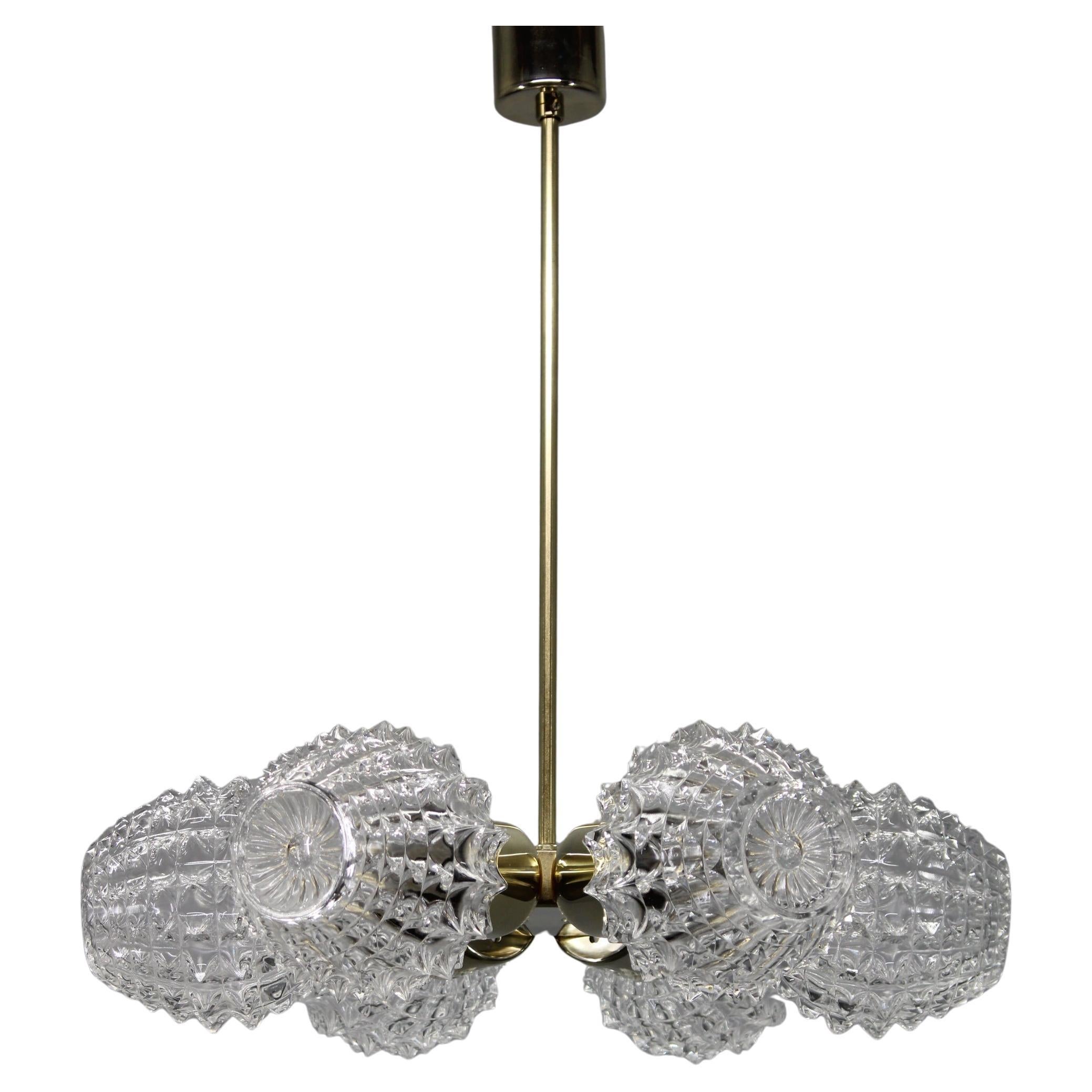 Lustre en laiton et verre de Kamenicky Senov des années 1960