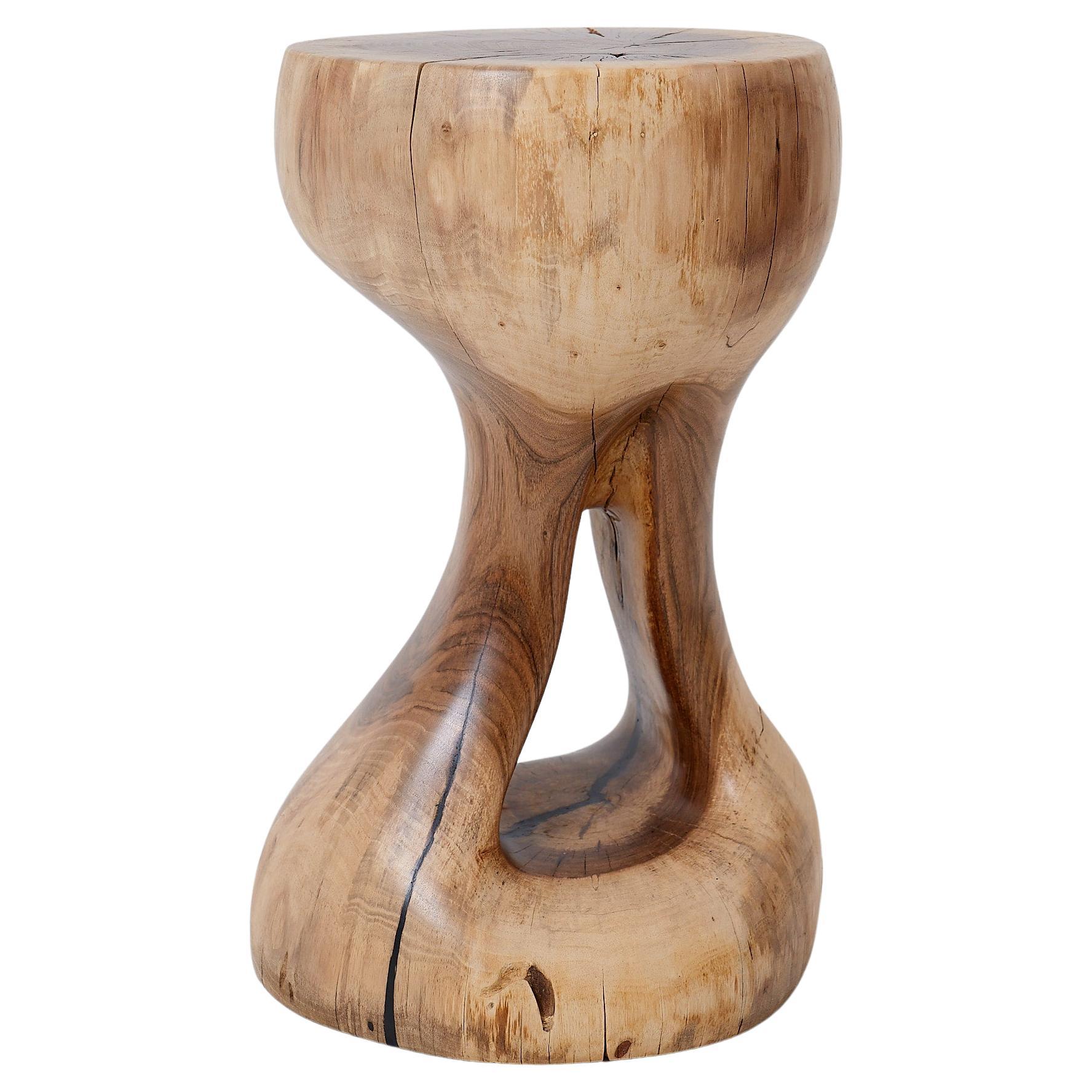 Cette table d'appoint biomorphique est une œuvre d'art singulière, sculptée à la main dans une seule bille de bois dur pour obtenir une silhouette parfaite en sablier. Sa forme est u...