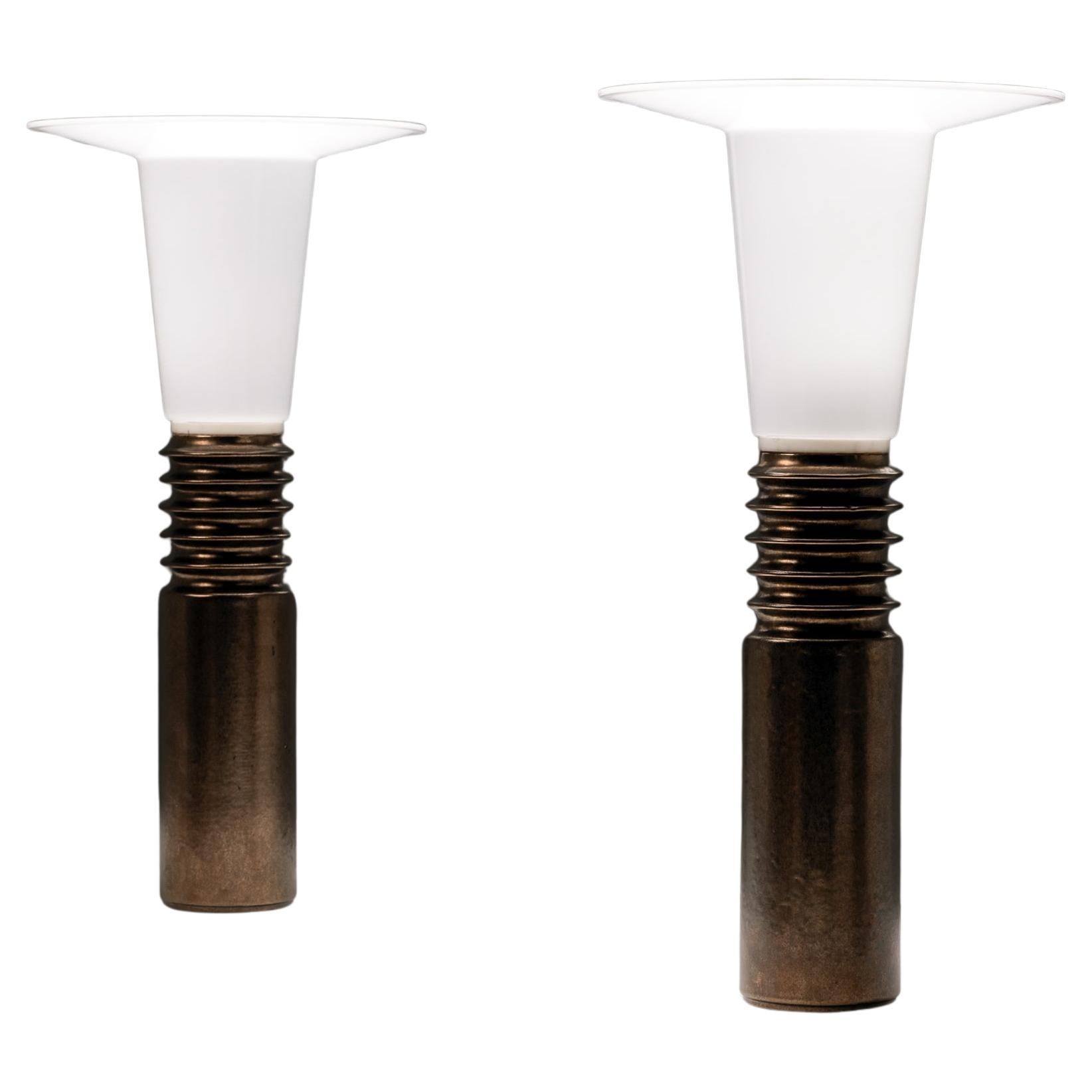 Paire de grandes lampes de bureau en pin massif teinté, Uno Kristiansson, Luxus, Suède