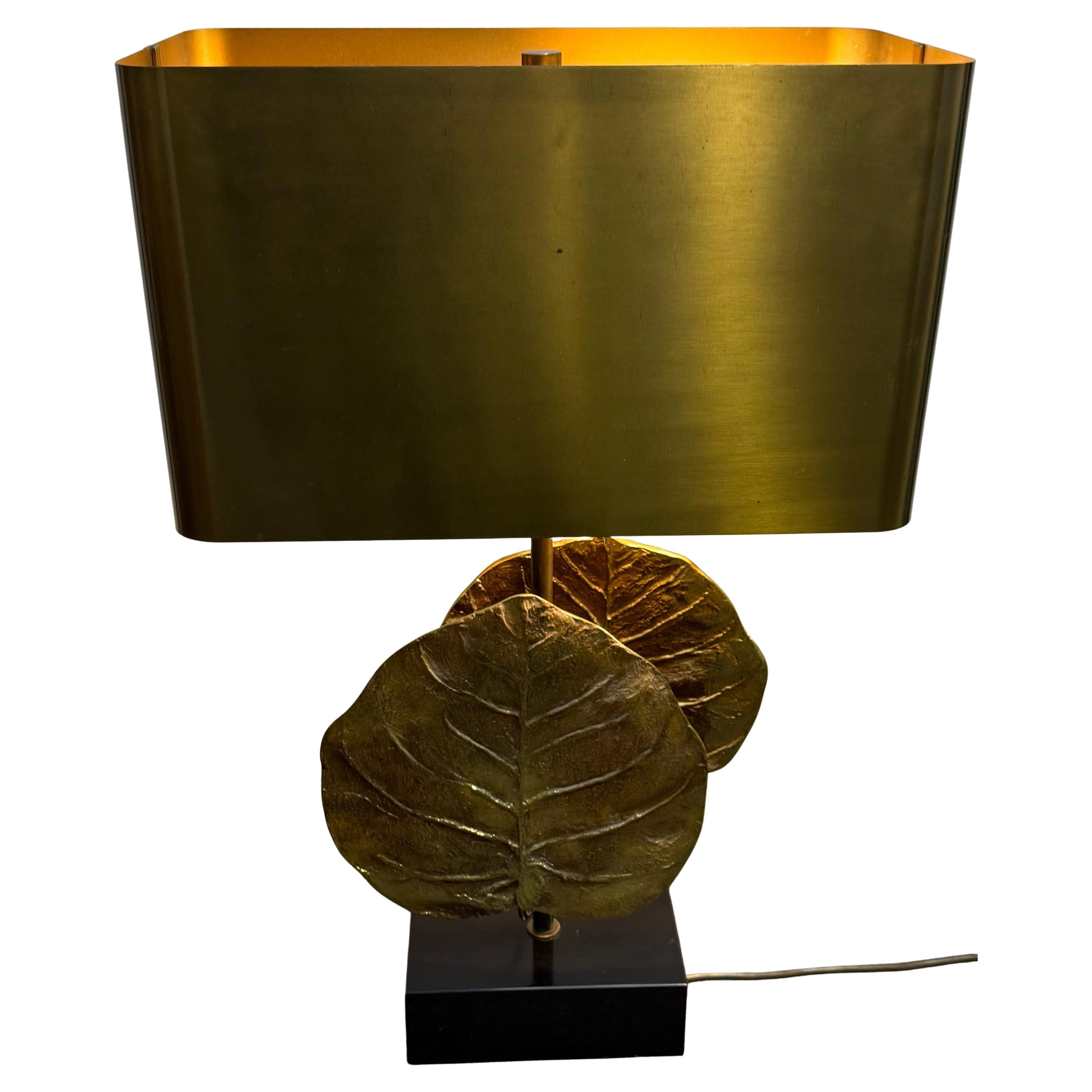 Paire d'appliques lumineuses à feuilles de palmier en laiton de la Maison Charles - Hollywood Regency