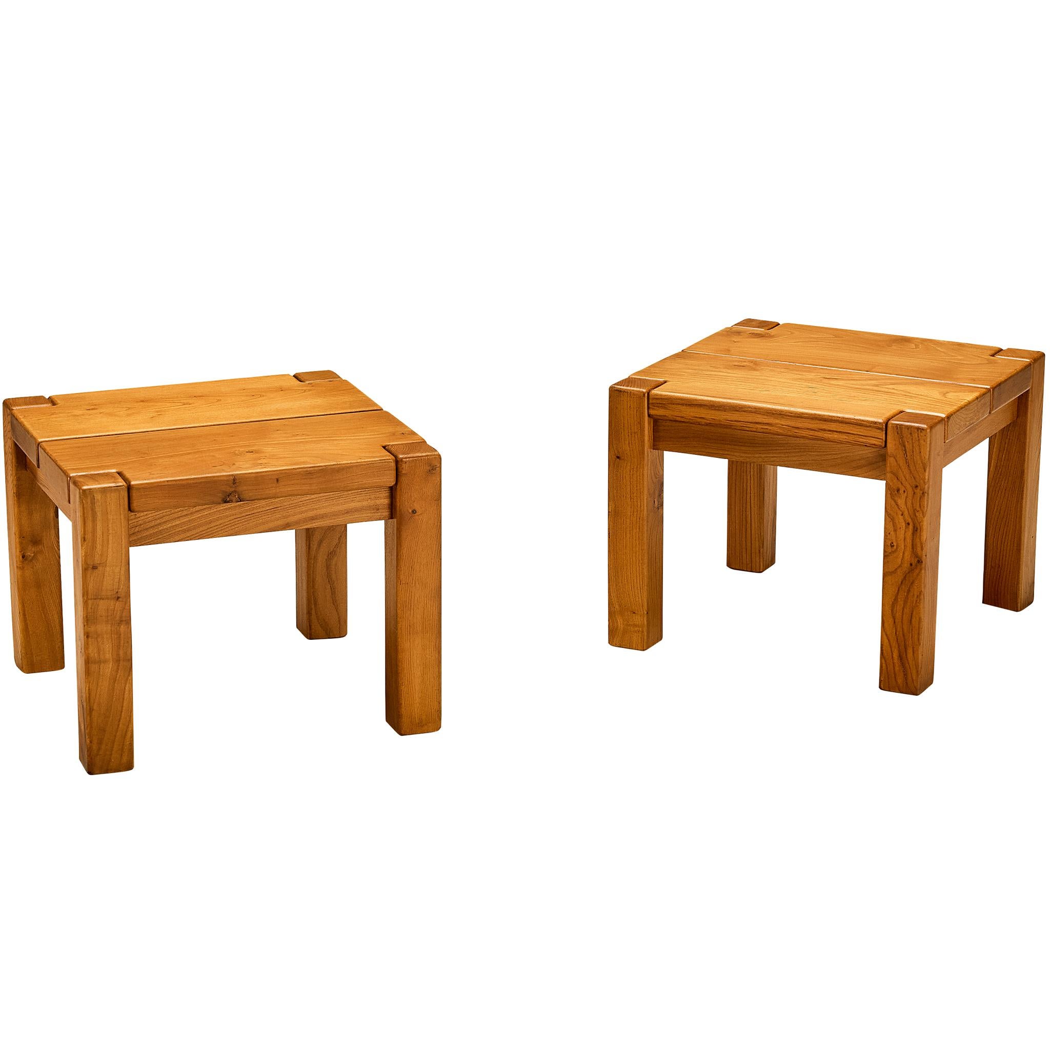 Maison Regain, paire de tables d'appoint en orme, France, années 1970
