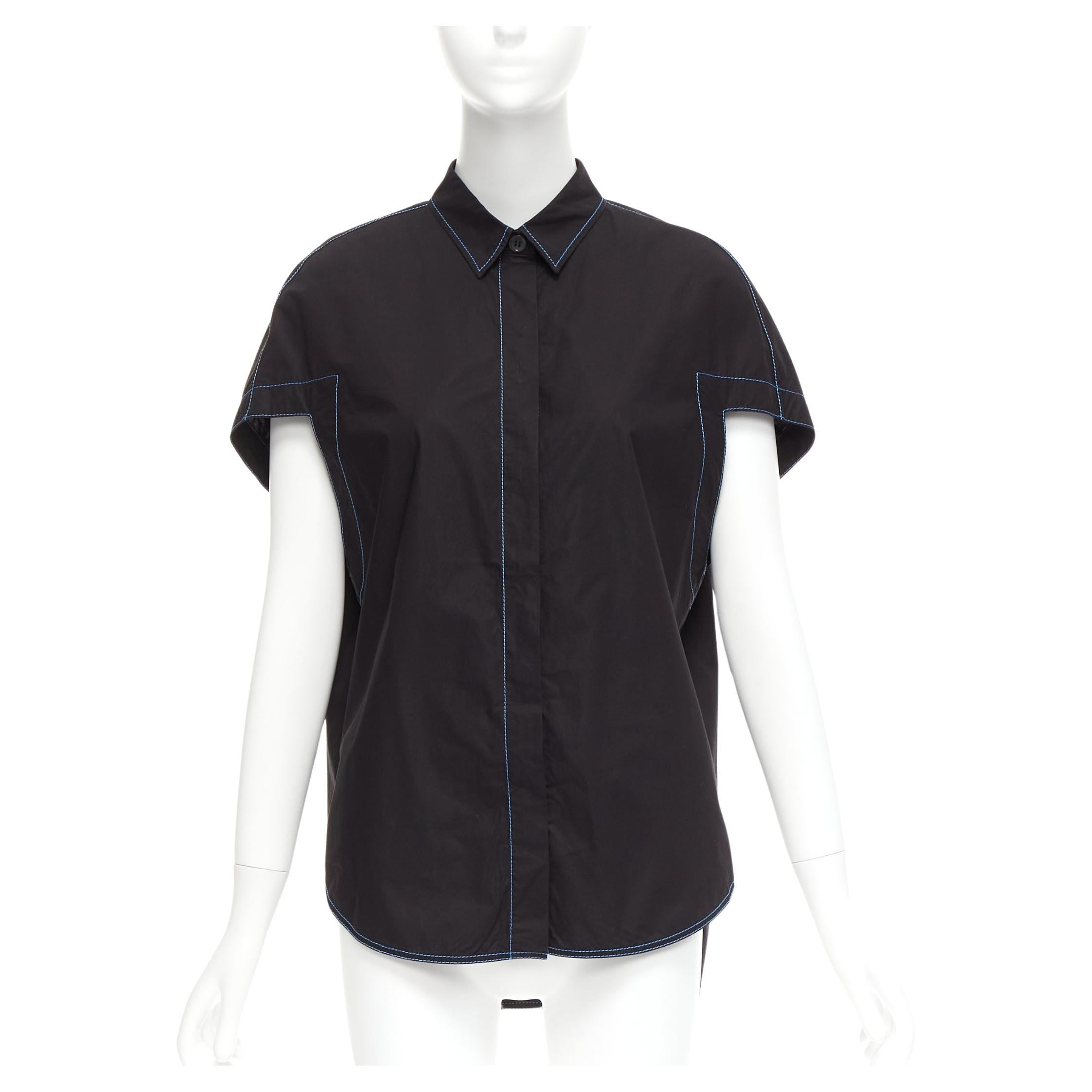 MARNI noir bleu surpiqué épaule ronde chemise boxy coupe 3D IT40 S