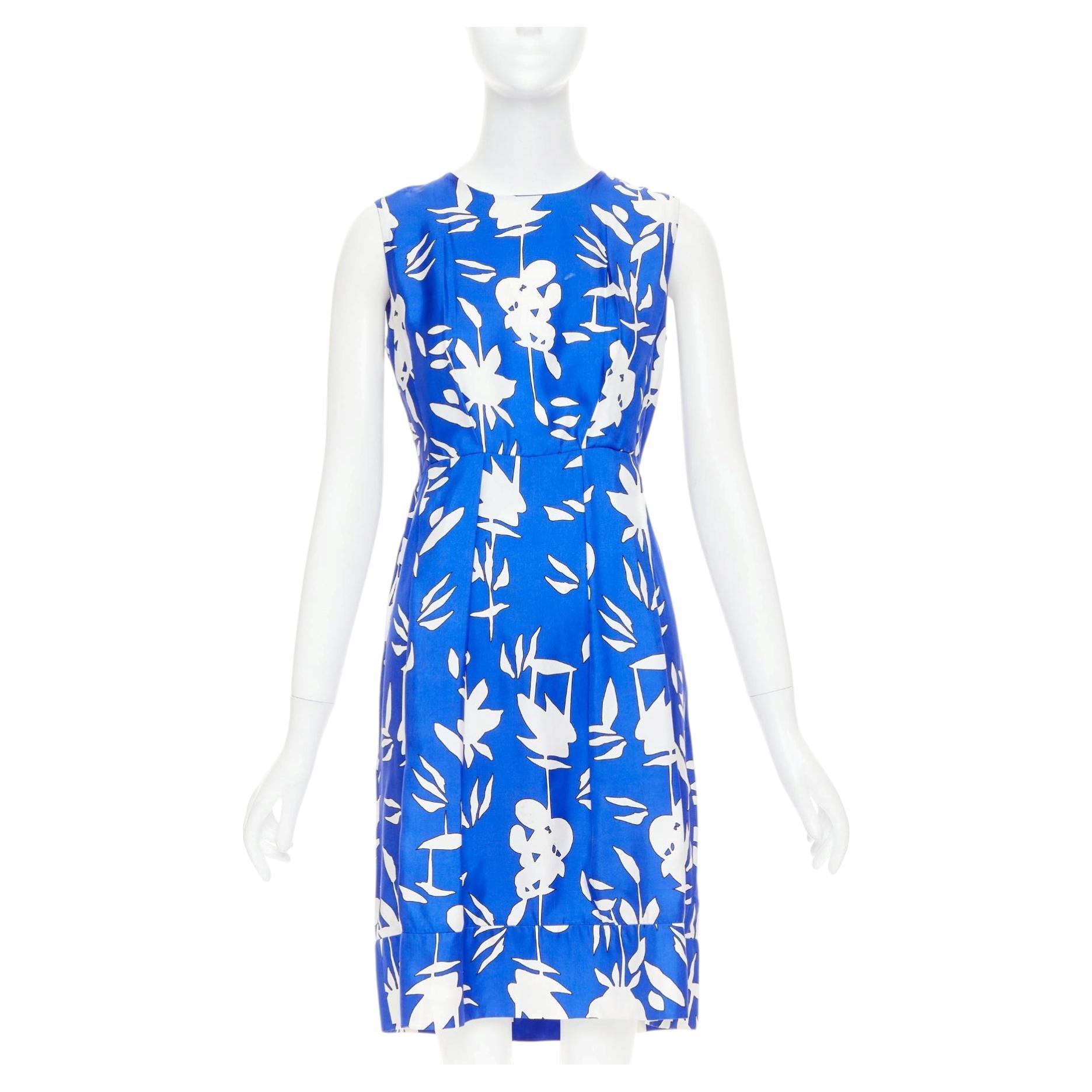 MARNI bleu noir coton lin robe à larges fleurs IT38 XS