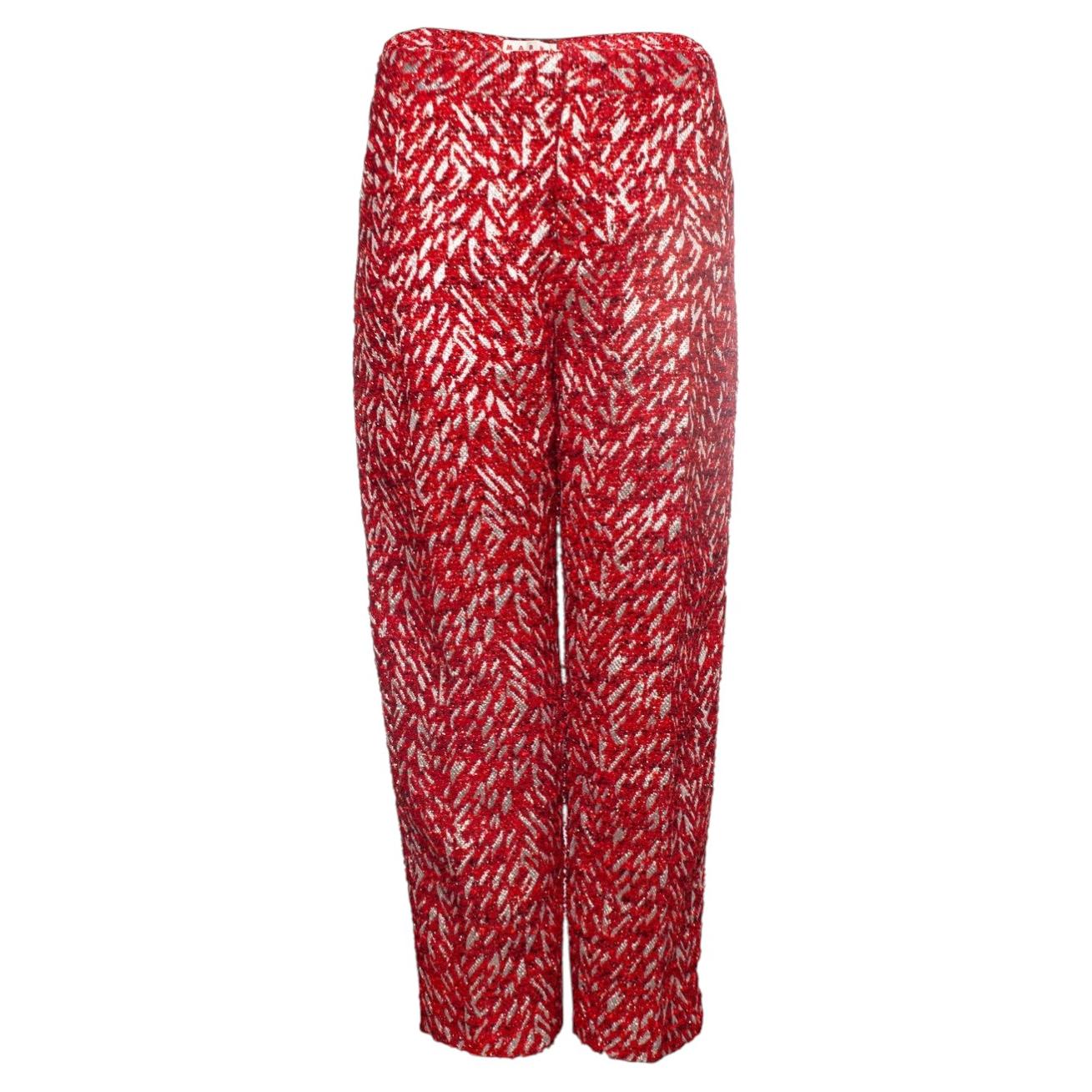 MARNI rouge beige 100% coton imprimé floral abstrait chemise crop IT38 XS
