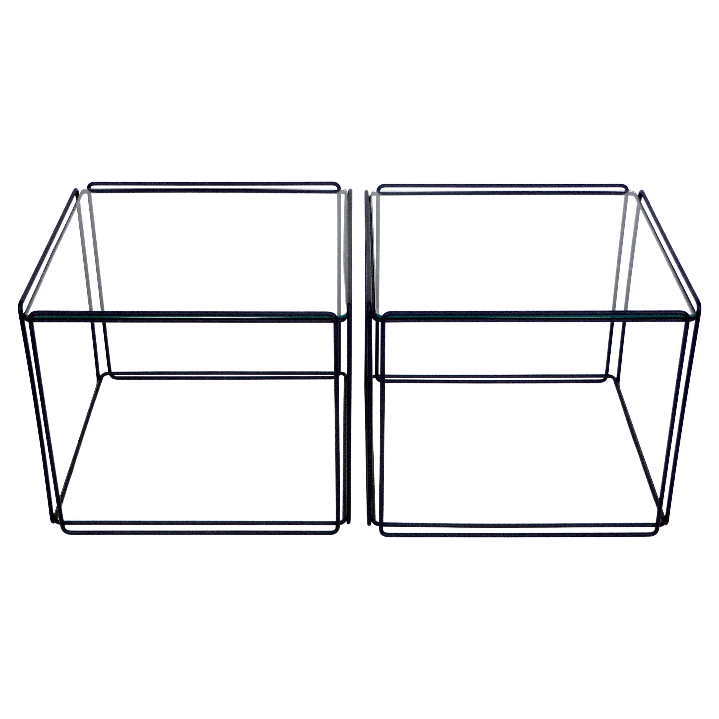 Paire de tables d'appoint ou tables basses en métal noir et verre Max Sauze Isoceles pour Attro France.
