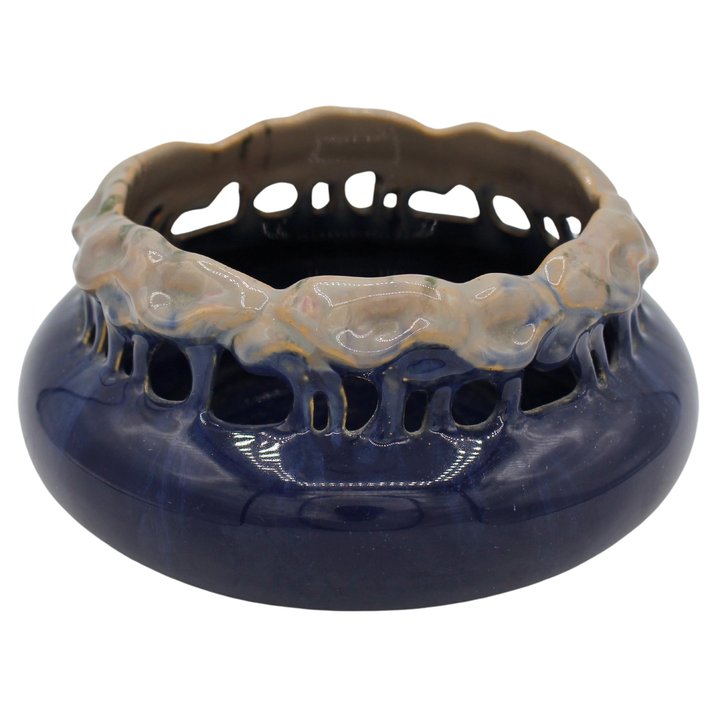 Bol bas de style moderne du milieu du siècle par Michael Andersen & Sons, danois. Bord réticulé et Foldes ; cobalt à gris. (Jens Michael Andersen, 1859-1931, Bornholm, Danemark.) L'e...