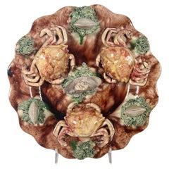 Assiette à huîtres en majolique française avec bambou et baies de la manufacture de Salins, vers 1890.