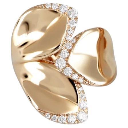 Bague torsadée à trois fleurs en or rose 18k avec calcédoine rose, grenat rouge, pierre de lune, diamants blancs et de couleur champagne, pour un total de 0.30ct Figlia dei Fiori cé...