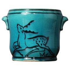 Plat à gâteaux en majolique Delphin Massier Circa 1890, 9,8 pouces de diamètre, 4 pouces de hauteur.