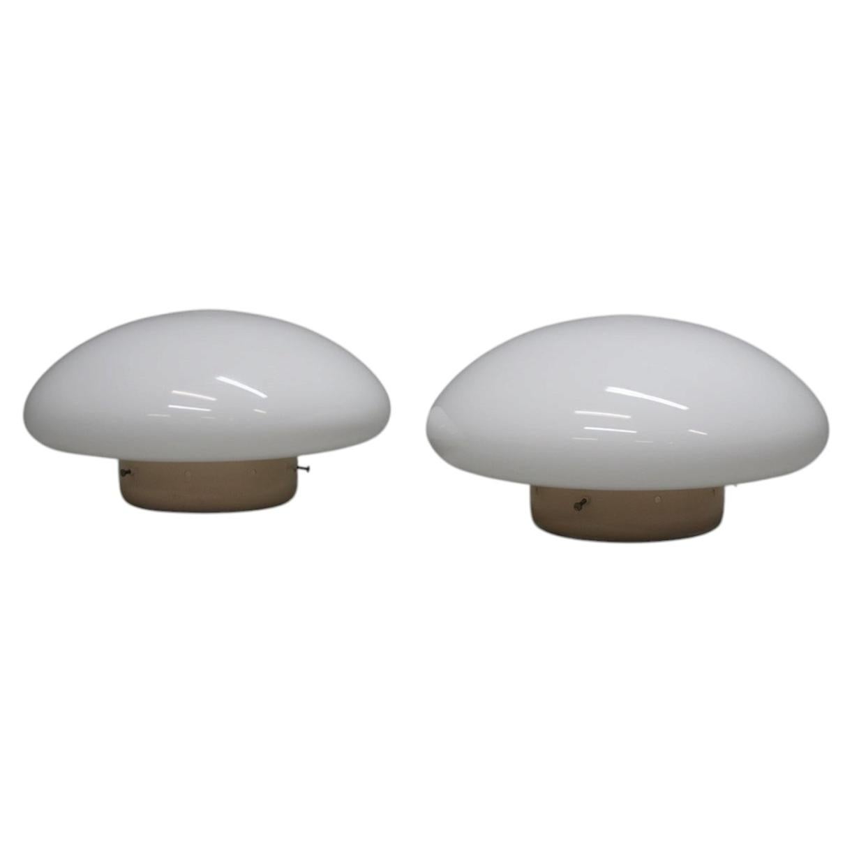 Petite lampe murale ou plafonnier en verre 'Magnolia' de Sergio Mazza pour Quattrifolio, c. 1971. Exécuté dans un abat-jour en verre opalin soufflé à la main, apparemment flottant et...