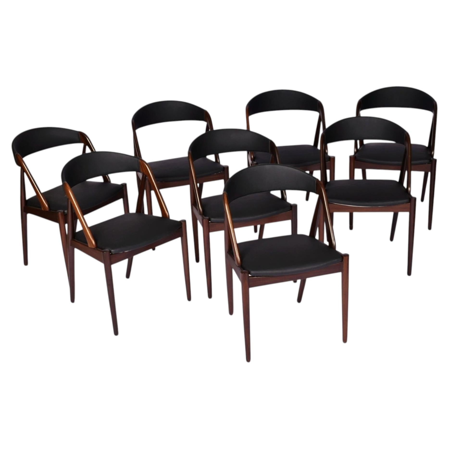 Kai Kristiansen Huit chaises de salle à manger en teck entièrement restaurées inc. Rembourrage sur mesure
