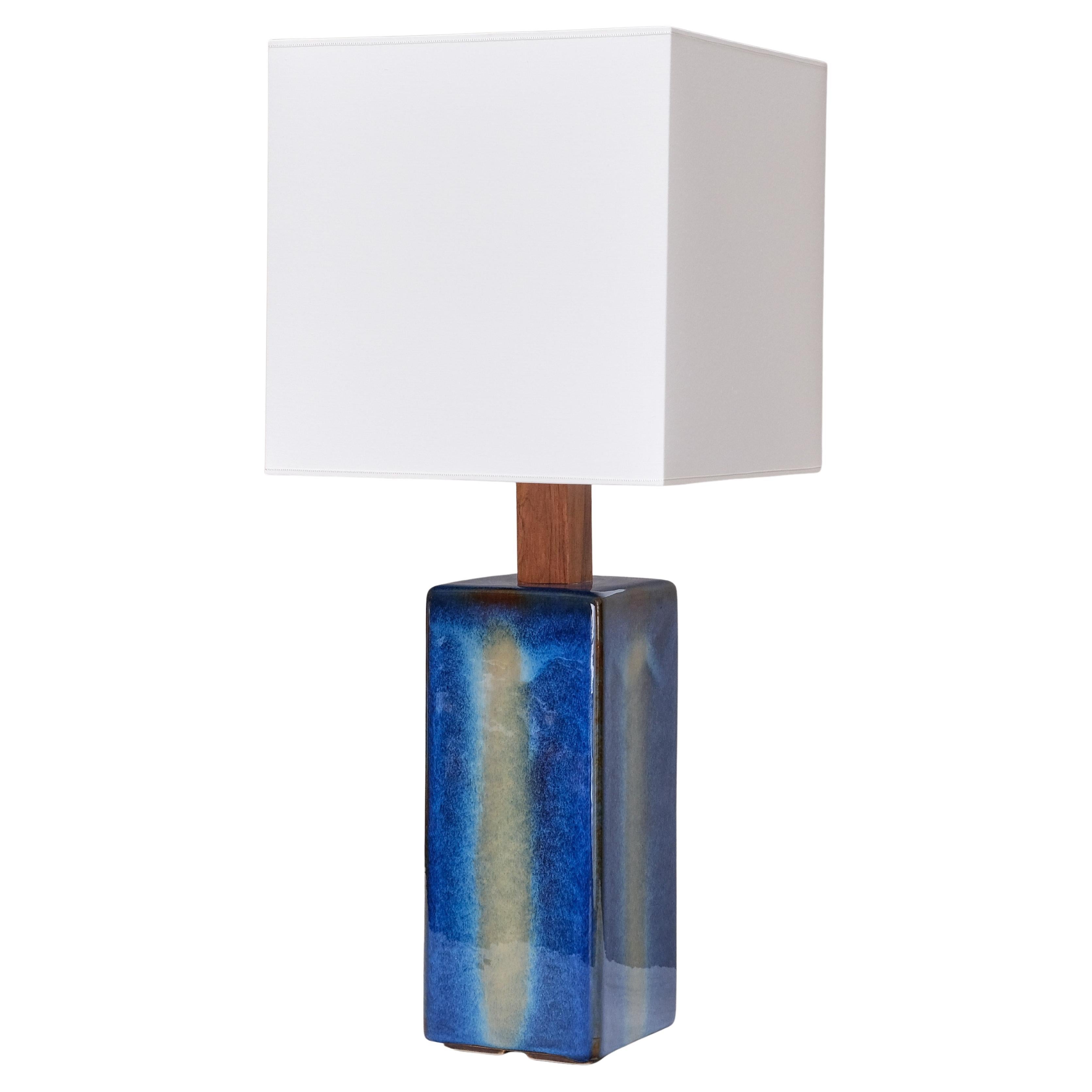 Lampe de table danoise en céramique bleue du milieu du siècle, conçue par Einar Johansen, fa...