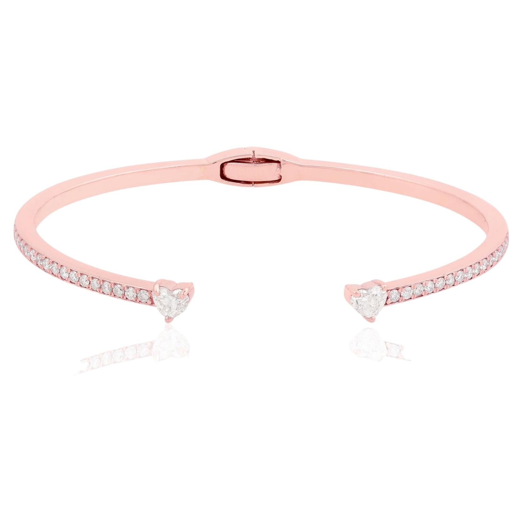 SI/H Diamond Solitaire Open Cuff Bangle Bracelet en or jaune 18k