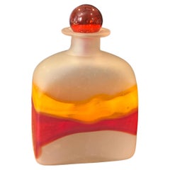 Un élégant vase italien en verre soufflé datant des années 1970. Il se distingue par sa forme généreuse aux lignes organiques et par son superbe décor marbré, mêlant des tons profond...