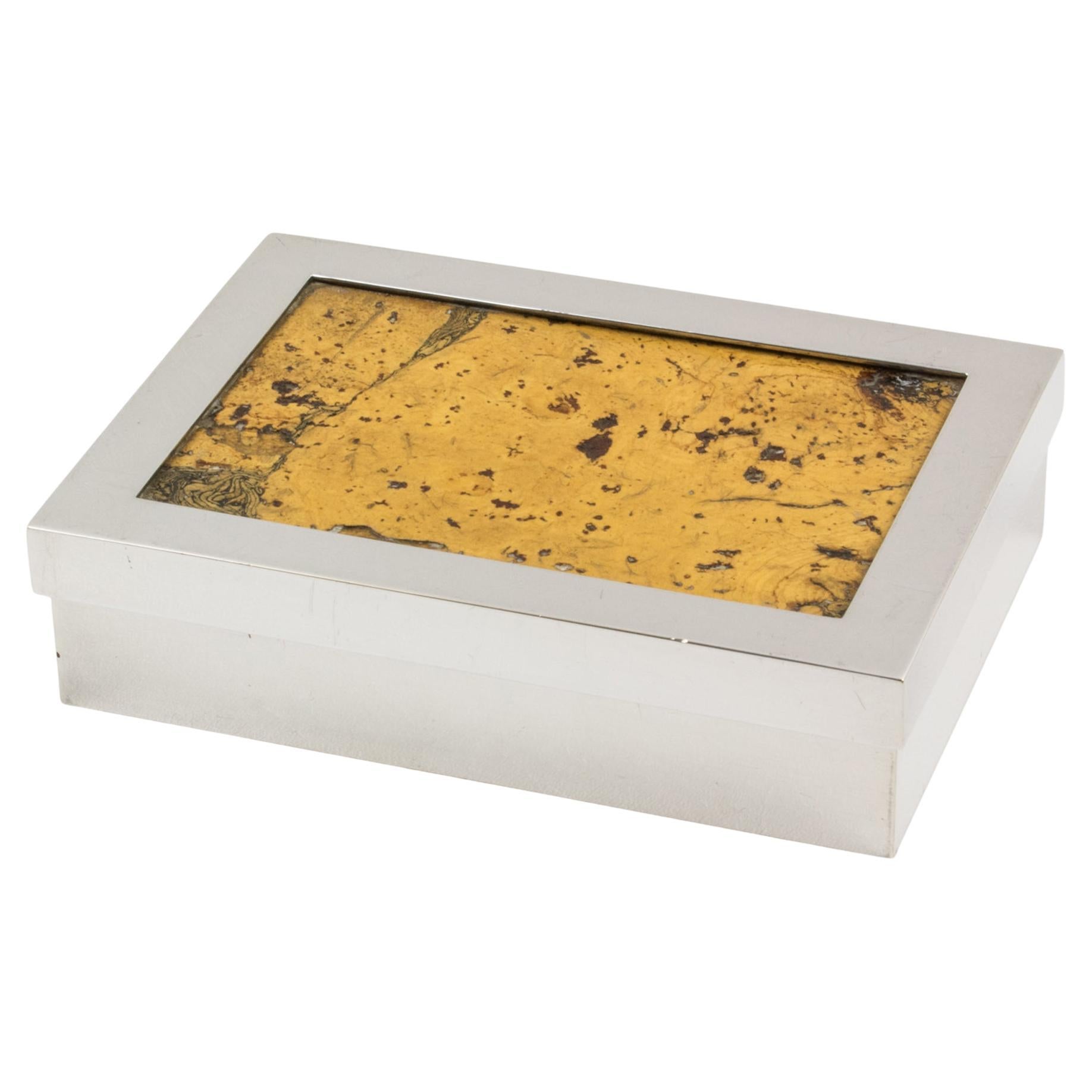 Boîte moderniste extra-longue et plate en métal argenté, vers 1960