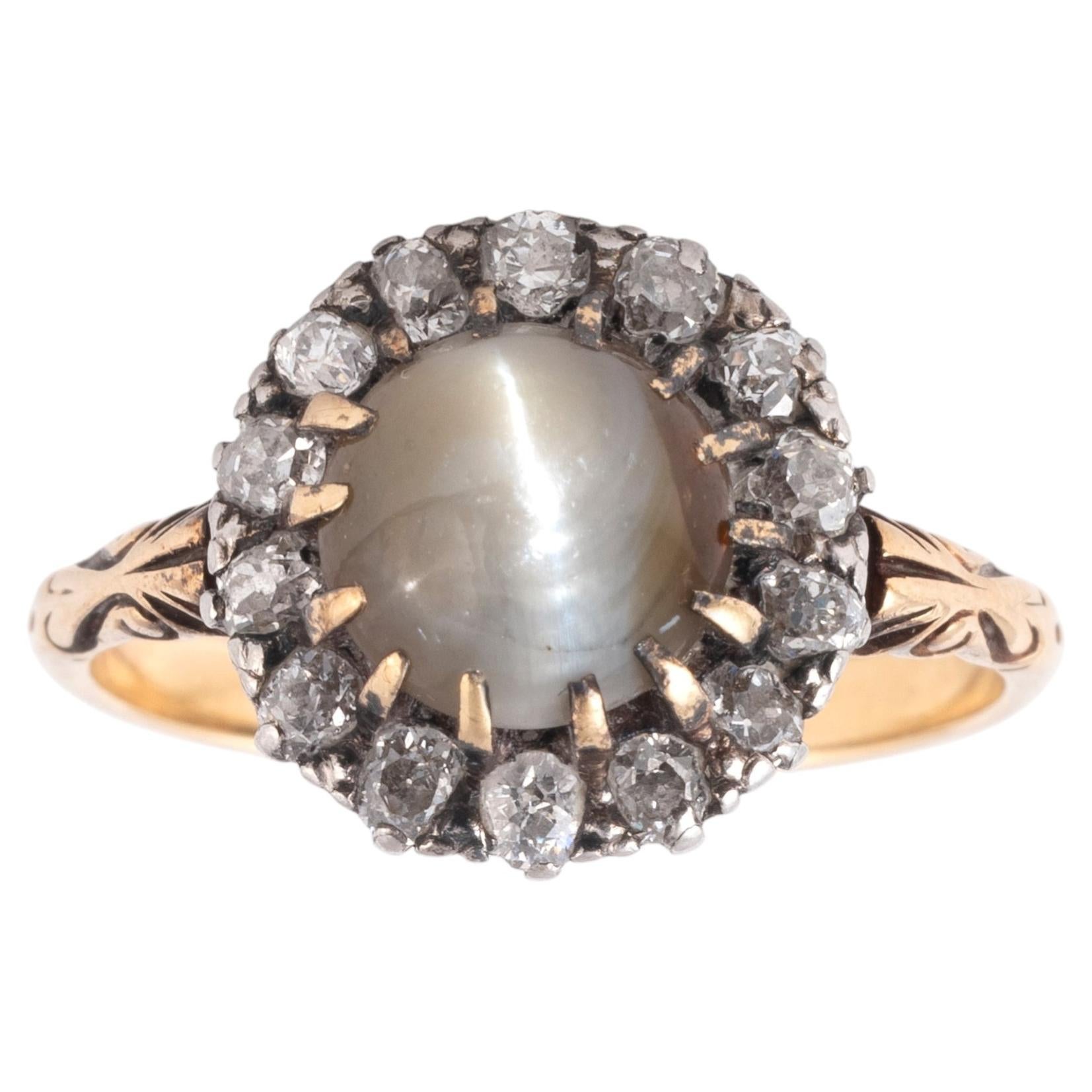 Élégante bague édouardienne à grappes de diamants, réalisée en or jaune 18 carats avec une monture en platine, mettant en valeur le savoir-faire raffiné et les proportions délicates ...