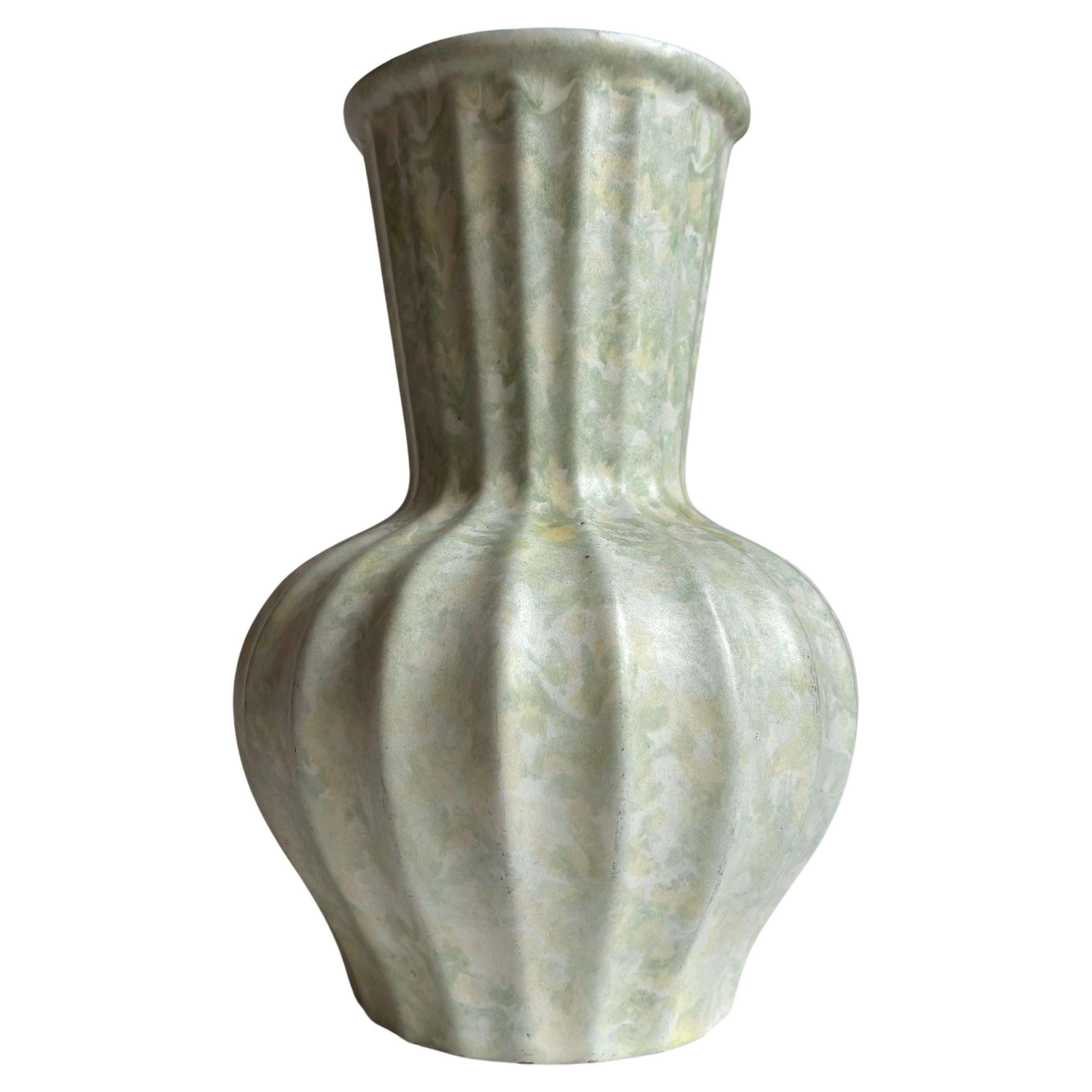 Un grand vase en faïence verte et beige, conçu et produit par Upsala Ekeby, Suède, années 1930.