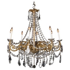 Magnifique lustre en verre vénitien rose soufflé à la main. Six bras torsadés avec de faux chandeliers et des charmes en forme d'anneau pendants, alternant avec des tiges de feuilles...