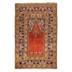 Ce tapis de prière en soie de Kayseri, tissé en Anatolie centrale au milieu du XXe siècle, reflète le savoir-faire raffiné et l'élégance du langage des formes qui ont fait la réputat...