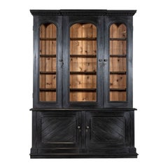Grande bibliothèque anglaise du XIXe siècle en chêne ébonisé et vitré
