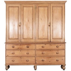 Grande armoire de ménage anglaise en pin du 19ème siècle